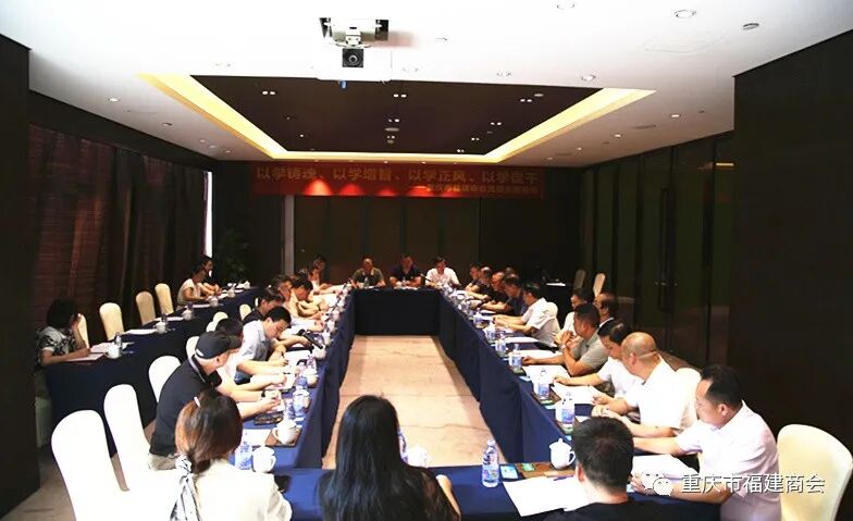 会议由商会党委书记傅荣辉主持,党委副书记郑立贤,党委委员陈元世、叶祖盼出席会议,商会副会长、党员共计27人参加学习。会长黄祖仕出席会议并发言,此次学习特别邀请福建省人民政府驻重庆办事处主任邱建平,书记王益生,商会顾问福清籍企业家巨成集团董事长黄祖仁,总经理黄怡霖列席会议。