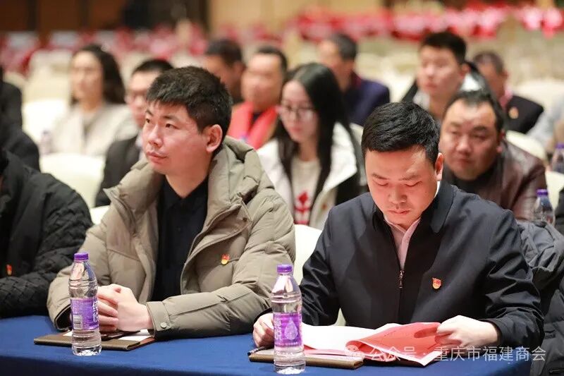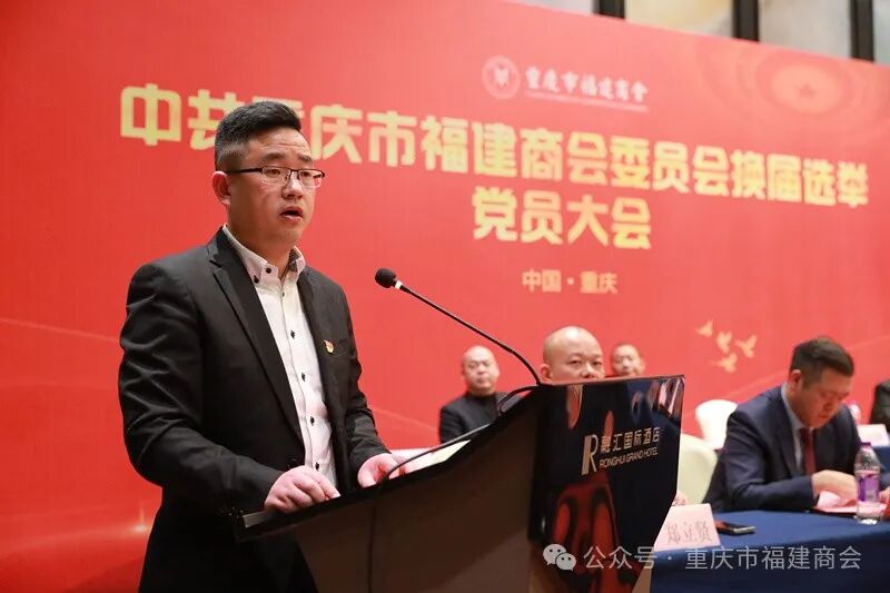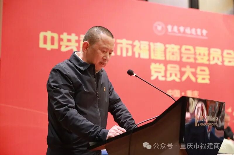 会议在庄严的国歌声中拉开帷幕。党委纪检委员叶祖盼宣读了《同意重庆市福建商会党委换届》的批复。商会党委书记、执行会长傅荣辉代表商会第二届党委班子向大会作工作报告。