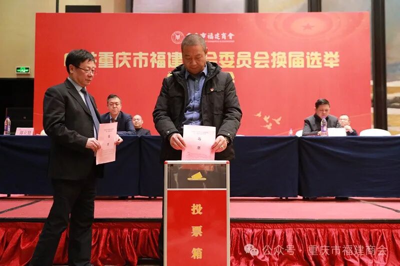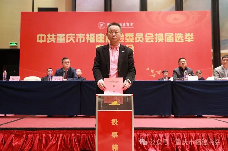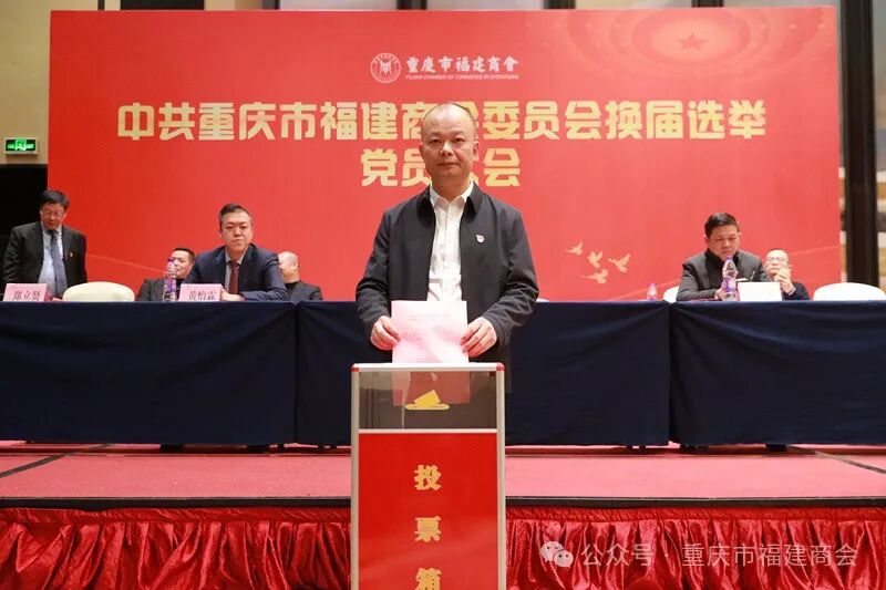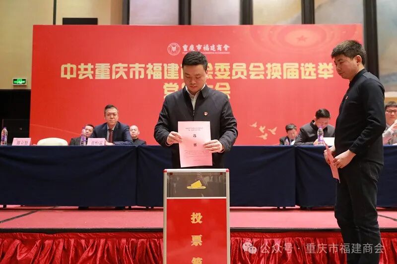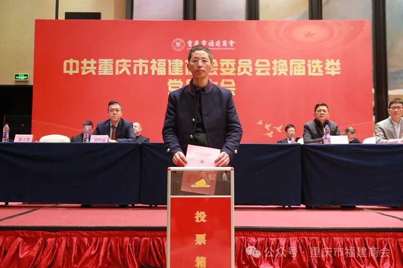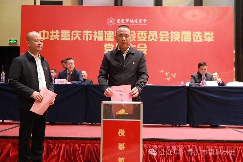 按照基层党组织选举原则和程序,会议审议通过了《重庆市福建商会党委选举办法(草案)》和《重庆市福建商会党委换届大会选举大会监票人、计票人名单》。以无记名投票方式,选举产生了新一届商会党委委员。执行会长傅荣辉获得连任,当选为党委书记,执行会长兼秘书长郑立贤、执行秘书长刘应泉当选为党委副书记,副会长叶祖盼、陈元世、蒋国运、吴文托当选为党委委员。
