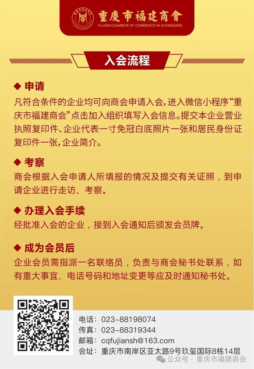 2024年1月27日,中共重庆市福建商会委员会换届选举党员大会在融汇国际酒店举行。商会44名党员参加了会议,福建省人民政府驻重庆办事处主任邱建平,重庆市福建商会会长黄怡霖列席会议。会议由商会党委副书记郑立贤主持。