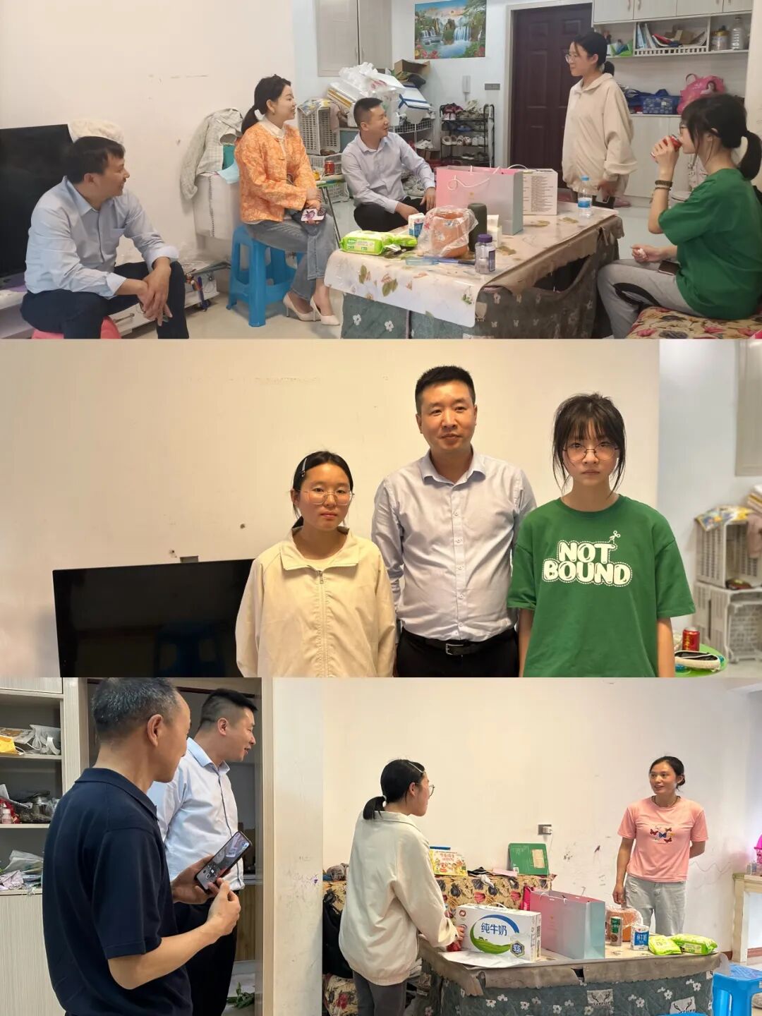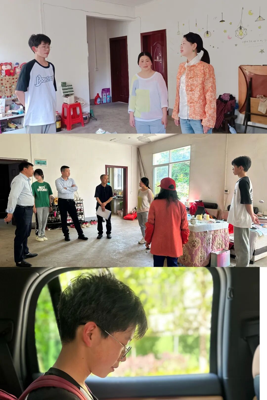 座谈会后,分组进行了实地走访。商会副会长赵宗伯,理事袁园、章剑锋等随同基金会秘书处(办公室)主任冉洪忠深入到高燕镇来凤村、美都香榭、城口中学,分别走访慰问了重师城口附中小袁、明通中学小徐、城口中学小郑、小瞿同学,询问和了解到目前的生活、学习情况。现场袁园女士把自己准备的2000元的学习及生活物资亲自送给孩子们,其他慰问团成员则为他们送去衣物、书籍和日常生活用品,鼓励他们努力学习,争取做一名对社会有用和传承爱心精神的人。