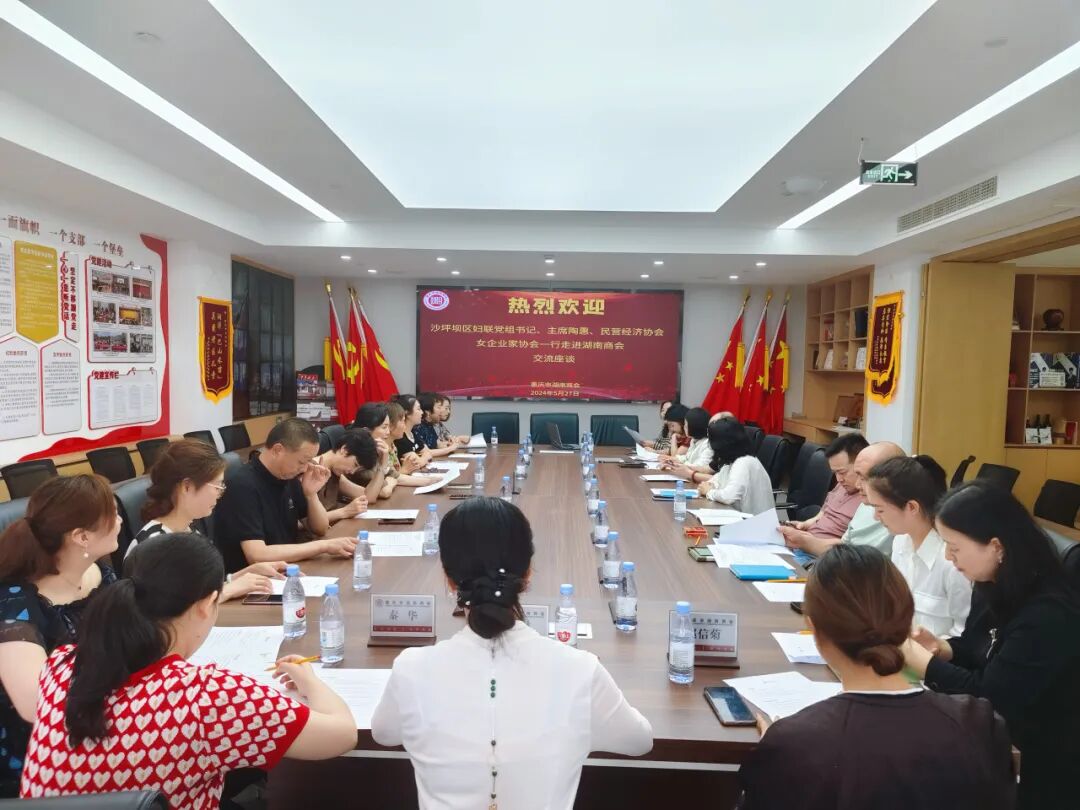 5月27日下午,沙坪坝区妇联党组书记、主席陶惠,民营经济协会、女企业家协会一行10余人走进重庆市湖南商会洽谈爱心结对帮扶沙区困境儿童、留守儿童相关事宜。我会会长周英,常务副会长刘吉民、贺卫国,副会长唐博、陈思、杨瑜琪、潘轶远及秘书长曹建波热情接待并座谈。