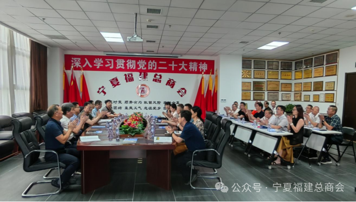 当天下午,考察组在宁夏福建总商会召开座谈会。总商会部分执行会长、常务副会长和来自家乡的领导、专家以及企业家,以学习贯彻习近平总书记来宁考察重要讲话为主题,回顾奋进拼搏历程,瞻望闽宁协作前景,气氛十分热烈。执行会长游立同,常务副会长黄启生、洪建芳、徐丽梅、黄朝红、严贤强、郑进琪、王文林、杨志伟参加座谈会。会长黄添进作商会建设和闽商事业发展情况汇报。