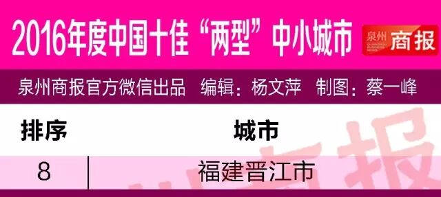2016年度中国十佳“两型”中小城市,晋江市上榜。
