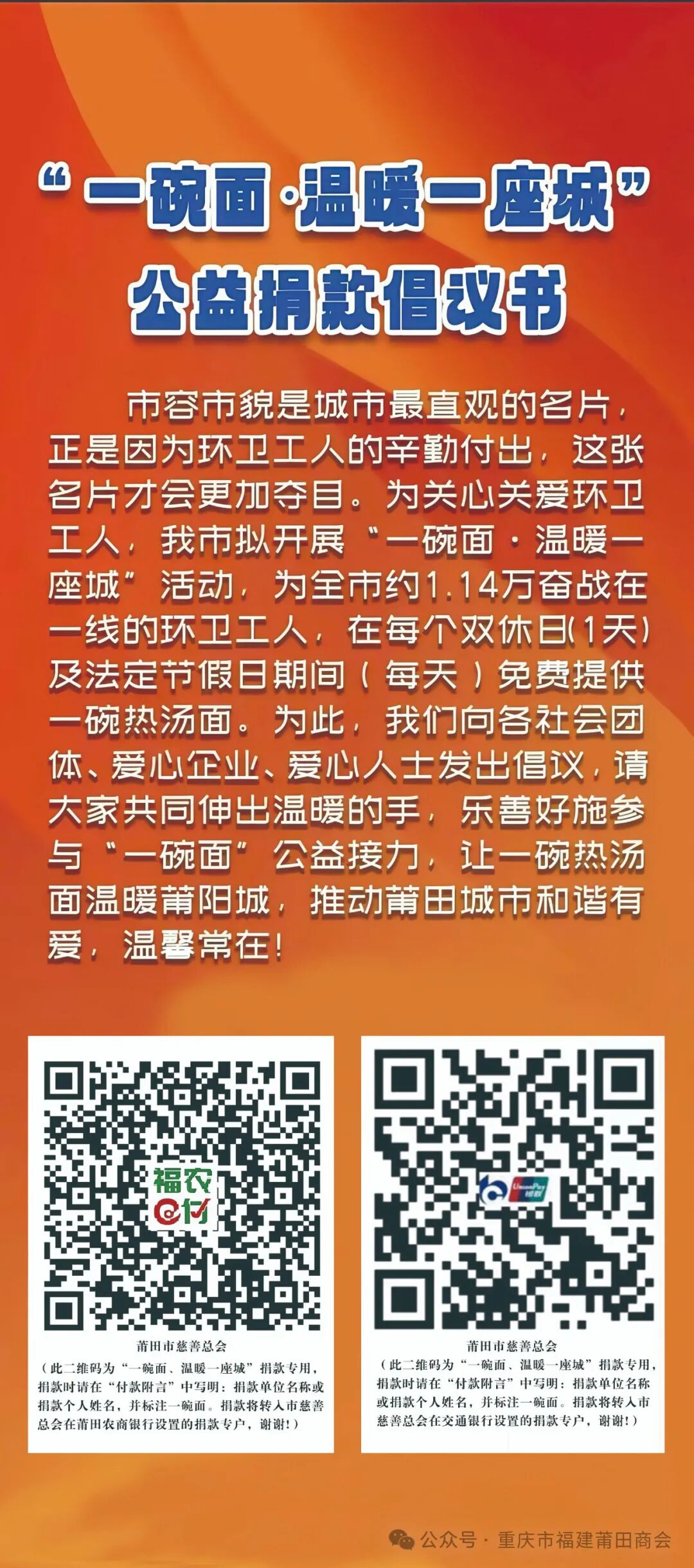 【莆商“五件事”】”一碗面,温暖一座城”公益捐款正式启动