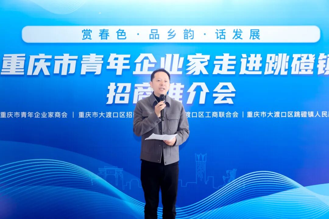 跳磴镇党委书记郑勇在欢迎辞中表示:“跳磴镇产业集聚效应凸显,商贸领域不断繁荣,农旅融合成效显著,期待与青年企业家们共探合作新可能。”
